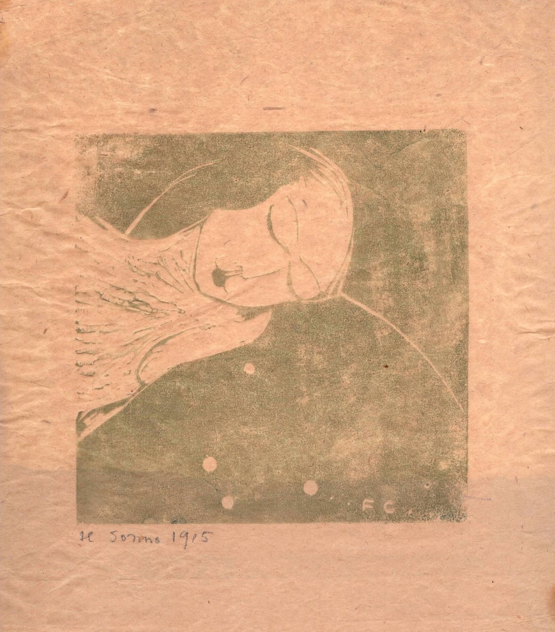 Firma incisa in basso a destra F.C., oltre l'immagine a matita: Il sonno 1915.
