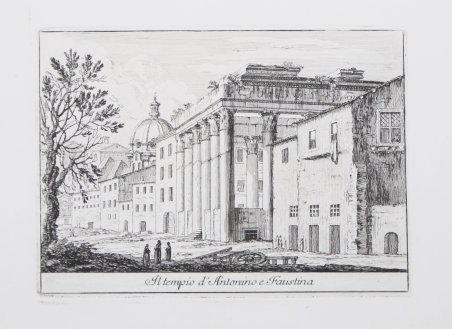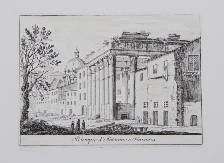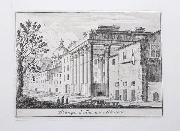 Acquaforte, 1745 circa, firmata in lastra. Magnifica prova, con pieni margini, in perfetto stato di conservazione.Opera tratta dalle “Varie Vedute di Roma Antica, e Moderna. Disegnate e Intagliate da Celebri Autori” stampata in Roma “a spese di Fausto Amidei”, 1748.La raccolta, in 4° oblungo, viene pubblicata da Fausto Amidei in varie edizioni dal 1745 al 1750, e da Giovanni Bouchard nel 1752. Conteneva frontespizio inciso e 93/96 tavole, delle quali 47 firmate Piranesi in lastra ed altre da Giraud, Carloni, Nicole, Mogalli, Bellicard, Le Geay, ed Anesi.Opere giovanili del Piranesi, appena giunto a Roma dove fu allievo della bottega di Giuseppe Vasi. Vasi lavora alle sue vedute, che presentate come raccolta, prenderanno dal 1747 il nome delle 'Magnificenze di Roma'; agli inizi dell’opera Piranesi lo affianca, ma, almeno dal 1744, produce sue proprie vedutine, che nel 1745 formano il nucleo più importante delle 'Varie Vedute di Roma antica e moderna disegnate e intagliate da celebri autori' per il libraio ed editore Amidei. Etching, around 1745, signed in plate. A very good impression with full margins, in perfect condition.Taken from the “Varie Vedute di Roma Antica, e Moderna. Disegnate e Intagliate da Celebri Autori” printe in Rome by Fausto Amidei, 1748.The collection, in 4th oblong, is published by Fausto Amidei in various editions from 1745 to 1750, and by Giovanni Bouchard in 1752. It contained an engraved frontispiece and 93/96 plates, of which 47 signed by Piranesi and others by Giraud, Carloni, Nicole, Mogalli, Bellicard, Le Geay, and Anesi.Early works by Piranesi, who had just arrived in Rome where he was a student of the workshop of Giuseppe Vasi. Vasi’s works will take the name of the 'Magnificenze di Roma'; from 1747; at the beginning of the work Piranesi joined him, but, at least since 1744, he produced his own views, which in 1745 formed the most important nucleus of the 'Varie Vedute di Roma antica e moderna disegnate e intagliate da celebri autori' for the bookseller and editor Amidei. Cfr.