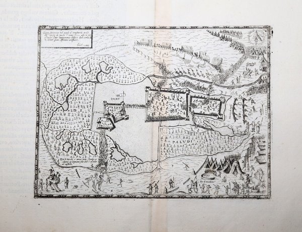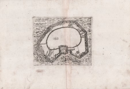 Rara pianta della città di Paolo Forlani. Esemplare della tiratura di Bolognino Zaltieri, con il testo descrittivo al verso di Giulio Ballino, stampata a Venezia nel 1569. “In alto a sinistra, in un riquadro, è inciso il titolo: ' Il vero disegno della pianta di MILANO si come veramente ogi di si ritrova. In Venetia all’insegna della Colonna l’anno. 1567. Nella tavola alcune didascalie forniscono delle indicazioni toponomastiche. Opera priva di orientazione e scala grafica. Schematica pianta della città, anonima, con il Castello Sforzesco posto in basso. Il cartiglio in alto a sinistra riporta l’imprint all’insegna della Colonna, che identifica la tipografia di Paolo Forlani. Oltre alla nuovissima cinta bastionata spagnola, ciclopica opera iniziata intorno al 1550 sotto il governatorato di Ferrante Gonzaga, il castello si presenta munito sia della Tenaglia, sia della Galera, apparati difensivi protesi il primo verso il borgo degli Ortolani, il secondo verso la chiesa di S. Maria delle Grazie. Non è però raffigurato, benché ultimato proprio nell’anno di edizione di questa carta, il primo baluardo del castello (baluardo Albuquerque). Probabilmente perché il Forlani si basa su un modello precedente, che può essere identificato in un manoscritto conservato nella Raccolta Bertarelli, datato al 1548 circa. L’opera, oltre ad essere inserita in alcune raccolte cinquecentesche di grande formato, è contenuta in tutti e cinque gli esemplari noti del celebre ' Il primo libro delle citta et fortezze principali del mondo, la prima raccolta di piante e vedute urbane del Rinascimento italiano curata da Forlani e Domenico Zenoi. La pianta è ristampata, inalterata, da Bolognino Zaltieri in due diverse edizioni dell’opera ' De’ disegni delle più illustri citta, et fortezze del mondo ' di Giulio Ballino, entrambe pubblicate a Venezia nel 1569. L’opera non ha nessuna variante di lastra, ma le tirature dello Zaltieri presentano un testo descrittivo al verso.” (cfr. ' Cartografia e topografia italiana del XVI secolo, p. 2222). Paolo Forlani, nativo di Verona, nel 1560 aprì una propria bottega calcografica a Venezia, ' Al segno del pozzo, come risulta da alcune sue opere. Dal 1566 è attivo a ' Merzaria al segno della colonna ' e dal 1569 ' a Merzaria al segno della nave. Forlani ebbe rapporti commerciali con i maggiori editori di materiale cartografico del tempo, tra questi Antonio Lafreri, la famiglia Bertelli ed altri. Oltre ad essere un talentuoso incisore, era altresì rapido nell’esecuzione, qualità che gli consentì di lavorare contemporaneamente per editori diversi, e di eseguire una gran quantità di lavori. Woodward attribuisce a Forlani circa cento opere, di cui la maggior parte però non sono firmate. Tra il 1560 e il 1567, Forlani collaborò con Ferrando Bertelli, per cui incise una decina di rami, con Camocio, Bolognino Zaltieri e con Claudio Duchetti, per il quale incise alcune mappe. Per la sua attività professionale fu però molto importante e preziosa la collaborazione con Giacomo Gastaldi per il quale incise tredici carte. Nel 1567 Forlani pubblicava e commerciava la sua opera ' Il primo libro delle città et fortezze principali del mondo, i cui rami passarono poi a Bolognino Zaltieri. È probabile che il Forlani sia morto durante la peste che si diffuse a Venezia dal 1575. Bellissima prova, impressa su carta vergata coeva, testo descrittivo al verso, consueta piega centrale, in ottimo stato di conservazione. Bibliografia S. Bifolco, F. Ronca, ' Cartografia e topografia italiana del XVI secolo, tav. 1135; ' S. Bifolco, ' Città e Fortezze Principali del Mondo. Le prime raccolte italiane di cartografia urbana e gli isolari del XVI secolo, in “Cartografia e topografia italiana del XVI secolo”, pp. 137-152; Albert Ganado, ' The Forlani-Zenoi town books of 1567. ' A description and analysis, in “Florilegium Cartographicum. Beiträge zur Kartographiegeschichte und Vedutenkunde des 16. Bis 18. ' . Rare perspective view of the city by Paolo Forlani, 1567. Example issued by Bolognino Zaltieri, with descriptive text on verso by Giulio Ballino, printed in Venice in 1569. “In alto a sinistra, in un riquadro, è inciso il titolo: Il vero disegno della pianta di MILANO si come veramente ogi di si ritrova. In Venetia all’insegna della Colonna l’anno. 1567. Nella tavola alcune didascalie forniscono delle indicazioni toponomastiche. Opera priva di orientazione e scala grafica. Schematica pianta della città, anonima, con il Castello Sforzesco posto in basso. Il cartiglio in alto a sinistra riporta l’imprint all’insegna della Colonna, che identifica la tipografia di Paolo Forlani. Oltre alla nuovissima cinta bastionata spagnola, ciclopica opera iniziata intorno al 1550 sotto il governatorato di Ferrante Gonzaga, il castello si presenta munito sia della Tenaglia, sia della Galera, apparati difensivi protesi il primo verso il borgo degli Ortolani, il secondo verso la chiesa di S. Maria delle Grazie. Non è però raffigurato, benché ultimato proprio nell’anno di edizione di questa carta, il primo baluardo del castello (baluardo Albuquerque). Probabilmente perché il Forlani si basa su un modello precedente, che può essere identificato in un manoscritto conservato nella Raccolta Bertarelli, datato al 1548 circa. L’opera, oltre ad essere inserita in alcune raccolte cinquecentesche di grande formato, è contenuta in tutti e cinque gli esemplari noti del celebre Il primo libro delle citta et fortezze principali del mondo, la prima raccolta di piante e vedute urbane del Rinascimento italiano curata da Forlani e Domenico Zenoi. La pianta è ristampata, inalterata, da Bolognino Zaltieri in due diverse edizioni dell’opera De’ disegni delle più illustri citta, et fortezze del mondo di Giulio Ballino, entrambe pubblicate a Venezia nel 1569. L’opera non ha nessuna variante di lastra, ma le tirature dello Zaltieri presentano un testo descrittivo al verso.”