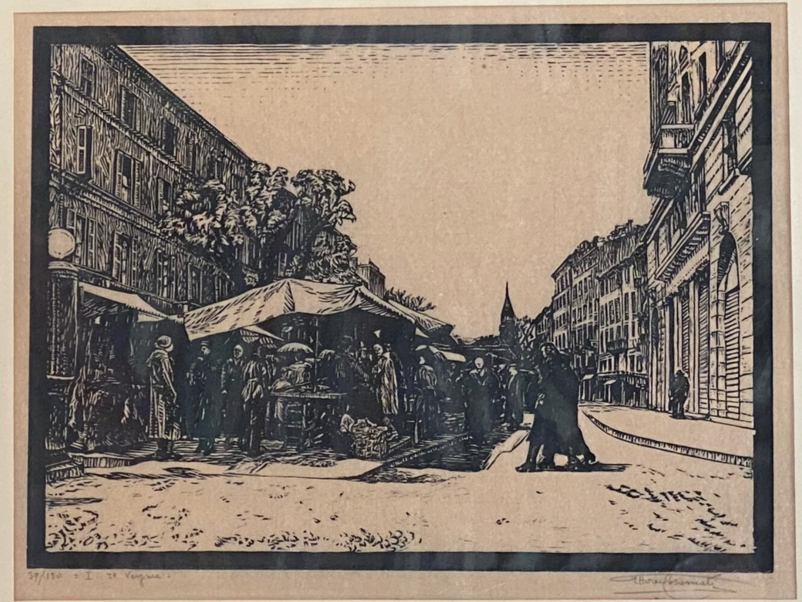 L'artista rappresenta un fermo immagine sulla vita milanese. Il Verziere, il mercato cittadino, animato in una giornata invernale di sole. Da fine Ottocento questa zona era contraddistinta da un doppio filare di alberi di robinia, bancarelle al centro e le abitazioni lungo la via. Interessante il profondo taglio prospettico che trascura il dato aneddotico quasi a suggerire una scenografia dove gli individui recitano la quotidiana avventura. La tecnica silografica e l'impiego della carta come elemento cromatico danno forza al chiaroscuro. In basso a matita a sinistra la numerazione e il titolo: 39/190 = I = Il Verziere; a destra la firma a matita. Il numero I potrebbe indicare una prima tavola dedicata la Verziere.