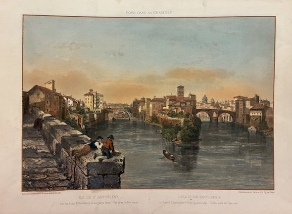 Ile de St. Barthelemy, avec les Pons St. Barthelemy et des Quatre-Tetes. Vue prise du Pont rompu - Isola di San Bartolomeo col Ponte di S. Bartolomeo e Ponte Quattro Capi. Veduta presa dal Ponte rotto