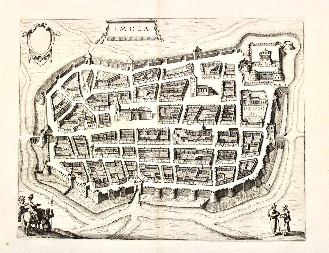 Incisione in rame, mm 396x512, testo latino al verso. Tratta dalla prima edizione del "Theatrum Civitatum et Admirandorum Italiae". Bellissimo esemplare marginoso rappresentante la pianta della città in elevazione prospettica. Koeman, Atlantes Neerlandici, I, pag. 333