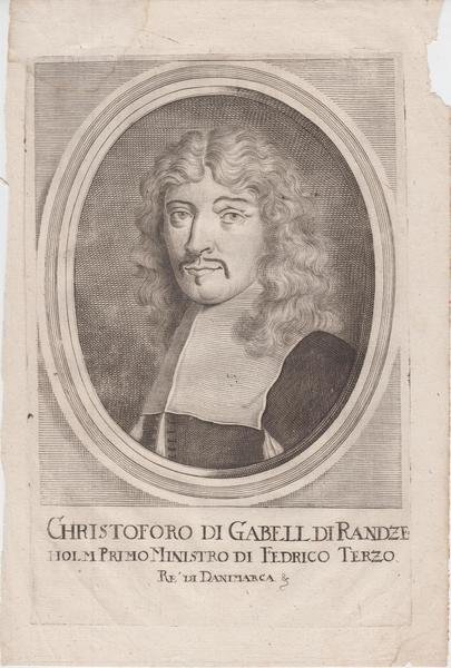 incisione Christoforo di Gabell di Randze Holm primo ministro di Federico Terzo Re di Danimarca 1624