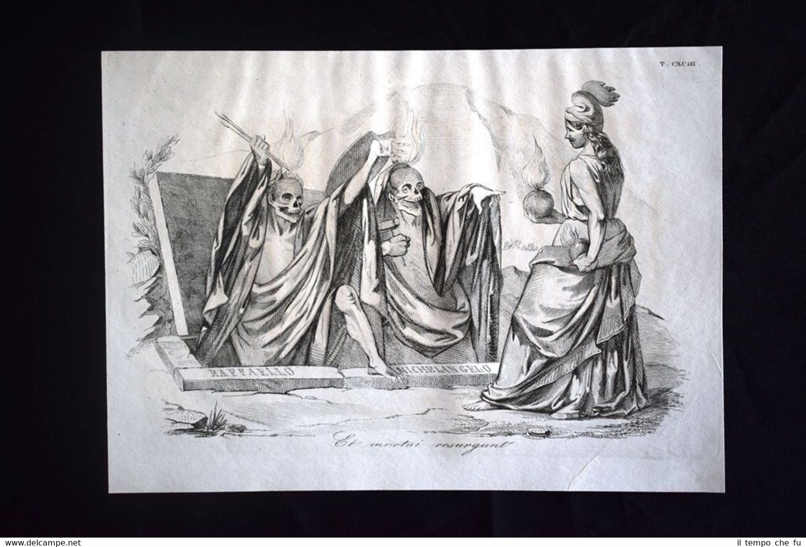 Preziosa ottocentina allegorico - caricaturale Tema: I capolavori dell'arte italiana distrutti dalle bombe francesi: i colossi di Prassitele e di Fidia il tempio della fortuna virile l'aurora di Guido Reni gli arazzi di Raffaello le pitture del Tintoretto il Colosseo, il Pantheon, il Campidoglio. Le ossa del Buonarroti e del Sanzio maledicono la Francia Bella e rara incisione all'acquaforte di satira pungente e dissacrante sui Moti del 1848, detti anche Rivoluzione del '48 o Primavera dei Popoli, che sconvolsero l'Italia e tutta l'Europa nel 1848 e 1849. Estratta dall'introvabile: Don Pirlone a Roma. Memorie di un Italiano dal 1°settembre 1848 al 31 dicembre 1850. Autore: Michelangelo Pinto Editore: Alessandro Fontana Anno di pubblicazione: 1851 DON PIRLONE - 014/CXCIII Dimensioni Cm 22,00 x 16,00 Qualora vogliate delle scansioni migliori contattateci, soddisferemo ogni vostra richiesta. Contesto storico: I moti del 1848, detti anche rivoluzione del '48 o Primavera dei popoli furono un'ondata di moti rivoluzionari borghesi che sconvolsero l'Europa nel 1848 e nel 1849. Scopo dei moti fu abbattere i governi della Restaurazione per sostituirli con governi liberali. Il loro impatto storico fu così profondo e violento che nel linguaggio corrente è entrata in uso l'espressione «fare un quarantotto» per sottintendere una improvvisa confusione e scompiglio. La prima agitazione europea del 1848 si verificò in Italia: la rivoluzione siciliana che esplose il 12 gennaio di quell'anno, che rappresentò la prima miccia dell'esplosione europea. L'insurrezione siciliana, infatti, spinse in un primo momento i Borbone a concedere il ritorno nell'Isola alla costituzione del 1812. Seguì una rivoluzione a Napoli, il 27, che costrinse, due giorni dopo, Ferdinando II a promettere una Costituzione, promulgata l'11 febbraio. Lo stesso 11 febbraio Leopoldo II di Toscana, cugino primo dell'imperatore Ferdinando I d'Austria, concesse la Costituzione, nella generale approvazione dei suoi sudditi. L'esempio borbonico fu seguito da Carlo Alberto di Savoia con lo Statuto Albertino e da Papa Pio IX con lo Statuto Fondamentale. Solo il re piemontese mantenne però lo Statuto. In Sicilia il parlamento proclamò in marzo l'indipendenza, che sarebbe durata fino al maggio 1849. Nel napoletano la concessione e la successiva repressione delle libertà costituzionali, portò dal maggio al settembre di quell'anno a una serie di moti. In tutto il Regno Lombardo-Veneto scoppiarono rivolte, come le Cinque giornate di Milano che sfociarono nella prima guerra di indipendenza. Nello Stato Pontificio una rivolta interna estromise papa Pio IX dai suoi poteri temporali e portò alla costituzione della Repubblica Romana. La rivoluzione delle Cinque giornate di Milano e altre proteste indussero il Re Carlo Alberto a dichiarare guerra all'Austria. Le truppe vennero presto sconfitte e solo quelle francesi poterono far retrocedere gli austriaci. La successiva ascesa al trono di Vittorio Emanuele II fece del Piemonte il motore propulsore del processo di unificazione italiana che tuttavia si sarebbe ottenuto solo nel 1861. Per quanto i Moti del '48 furono sedati abbastanza velocemente, le vittime furono decine di migliaia: il destino della democrazia europea ci è sfuggito di mano dichiarerà Pierre-Joseph Proudhon. Gli storici concordano che la Primavera dei popoli fu, alla fin fine, soprattutto un sanguinoso fallimento, se si eccettua la concessione dello Statuto Albertino nel Regno di Sardegna da parte di Carlo Alberto di Savoia, l'unica costituzione non revocata di quelle concesse o votate nel 1848-49. Vi furono tuttavia radicali e notevoli effetti a lungo termine: Germania e Italia sarebbero presto arrivate all'unificazione facendo leva anche sulla necessità di autodeterminazione dei popoli. Analogamente l'Ungheria sarebbe giunta ad un parziale riconoscimento della propria autonomia (a discapito della popolazione slava) grazie all'Ausgleich del 1867. In Prussia e Austria fu abolito il feudalesimo, mentre in Russia fu eliminata la servitù della gleba nel 1861. Tavola allegorico - caricaturale sullo stato dell'Italia del tempo, incisione su rame ricca di significato e rappresentazione mediante satirica dissacrante della condizione della nostra penisola oppressa. Le tavole dell'opera furono in parte riprese dal giornale romano Don Pirlone, quotidiano, uscito dal 1 settembre 1848 al 2 luglio 1849 (con una interruzione dl 29 aprile al 7 maggio 1849), ma in parte furono realizzate appositamente per questa opera. Tra gli incisori sono presenti anche i nomi di Ratti, Vaiani, Monneret, Gallucci, Pichi, Masutti. Il titolo Don Pirlone deriva quasi sicuramente da una maschera creata dallo scrittore satirico Girolamo Gigli (1660 - 1722). Si trattava di una specie di Tartufo molieresco, ispirato ad una figura reale, il canonico Feliciati di Sarteano. Nei tre volumi l'avvocato Michelangiolo Pinto raccolse tutto il pubblicato del giornale, che fu il più temuto e allo stesso te