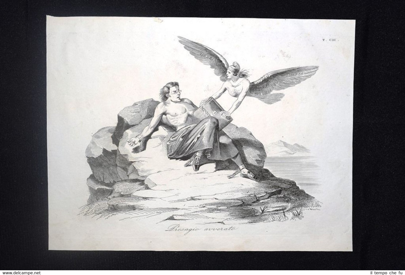 Incisione d'allegoria e satira Fine politica Vincenzo Gioberti Don Pirlone 1851