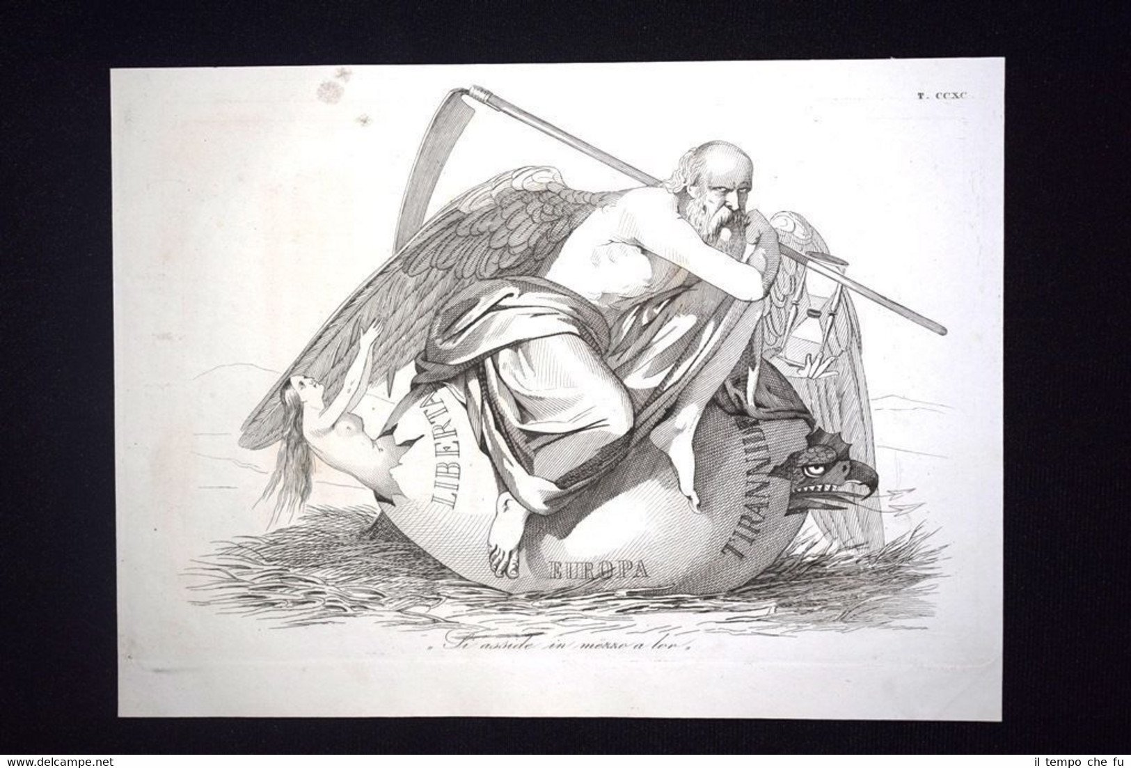 Incisione d'allegoria e satira Libertà, Tirannide, Europa Don Pirlone 1851