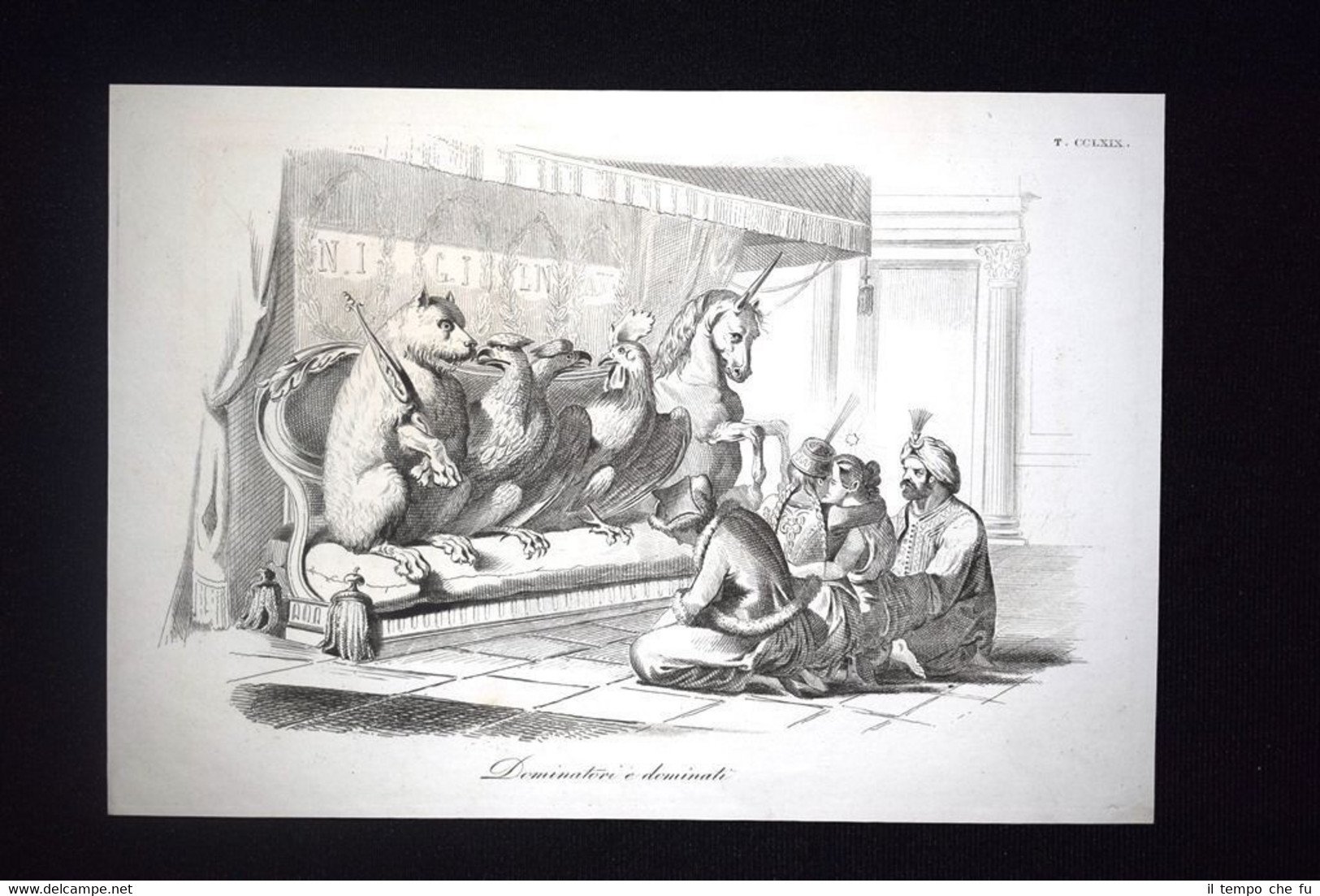 Incisione d'allegoria e satira Russia, Austria, Turchia, Italia Don Pirlone 1851