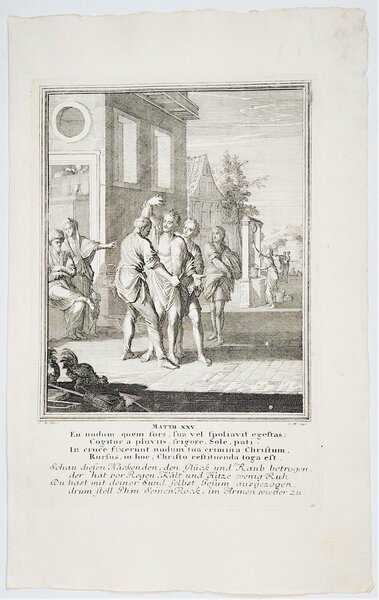 Incisione print Il giudizio universale Le opere di misericordia inc. C. L. fec. Nuovo testamento 1708 c Weigel