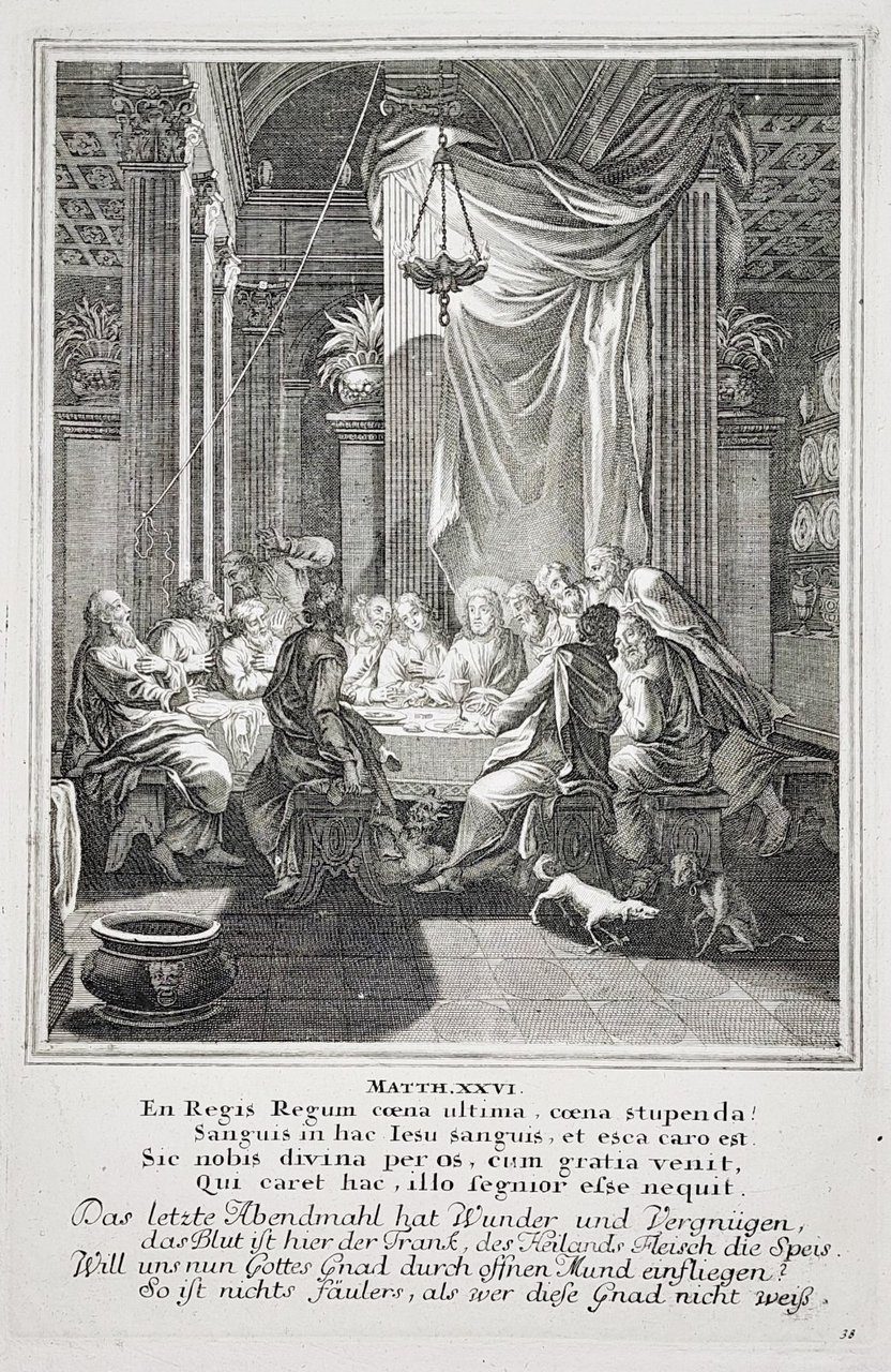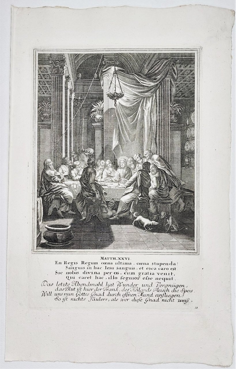 Incisione print L'ultima cena Nuovo testamento 1708 c Weigel
