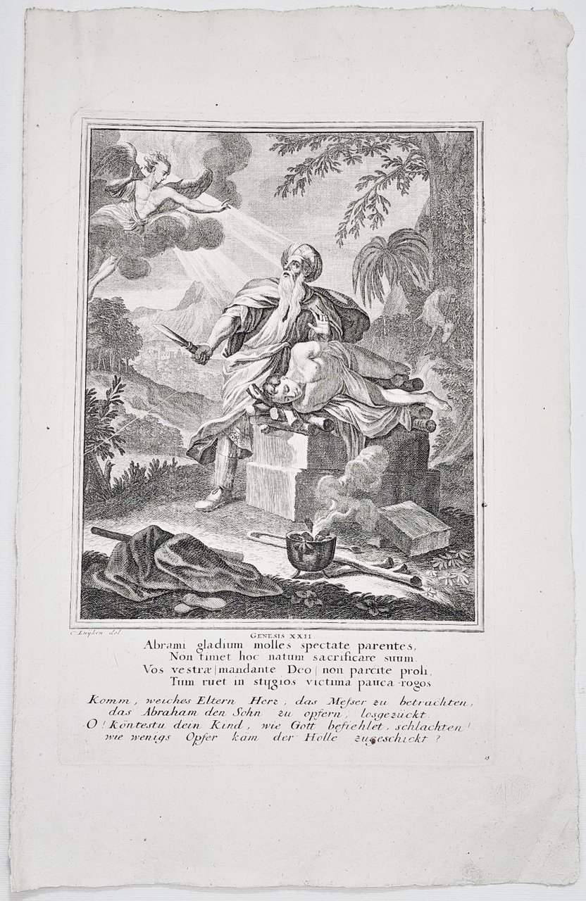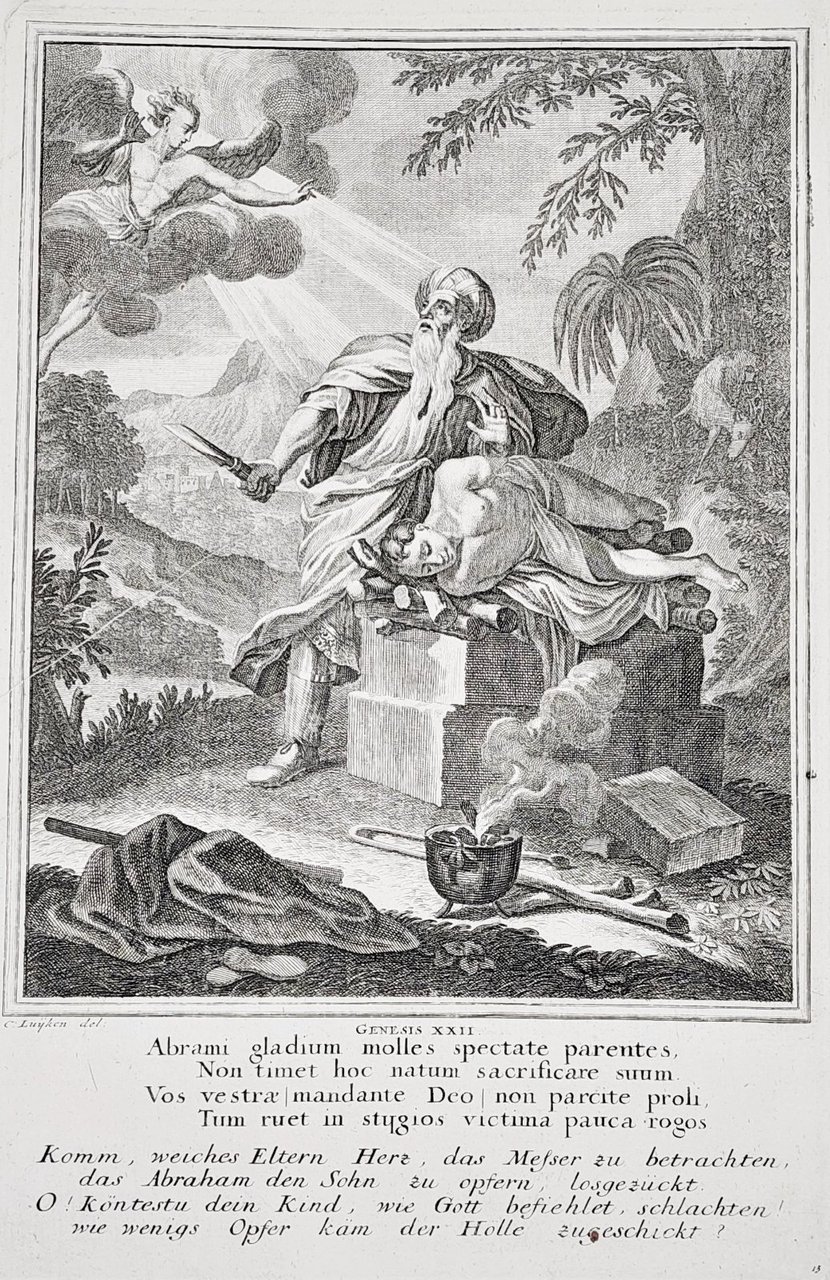 Incisione print Sacrificio di Isacco inc. C. Luyken Vecchio testamento 1708 c Weigel