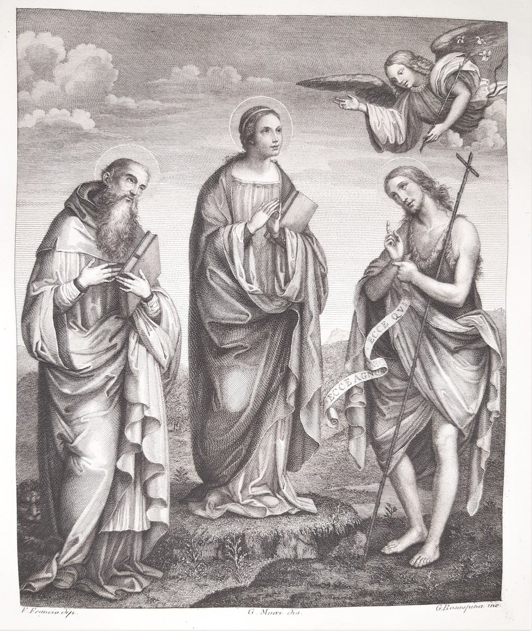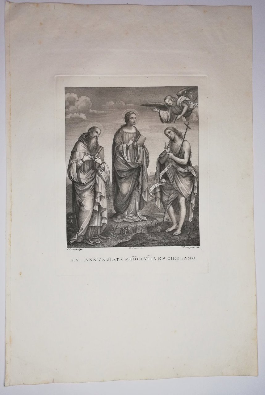 Incisione stampa G Rosaspina Beata Vergine Annunziata S Giobatta S Girolamo 1830
