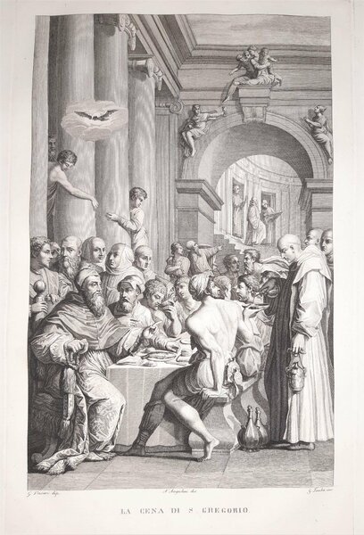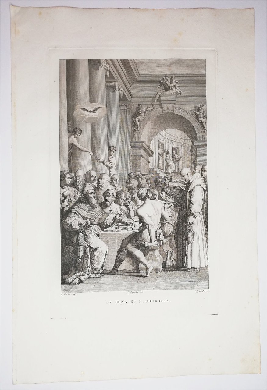 Incisione stampa G. Tomba La cena di San Gregorio 1830 cm 46,5 * 30,6