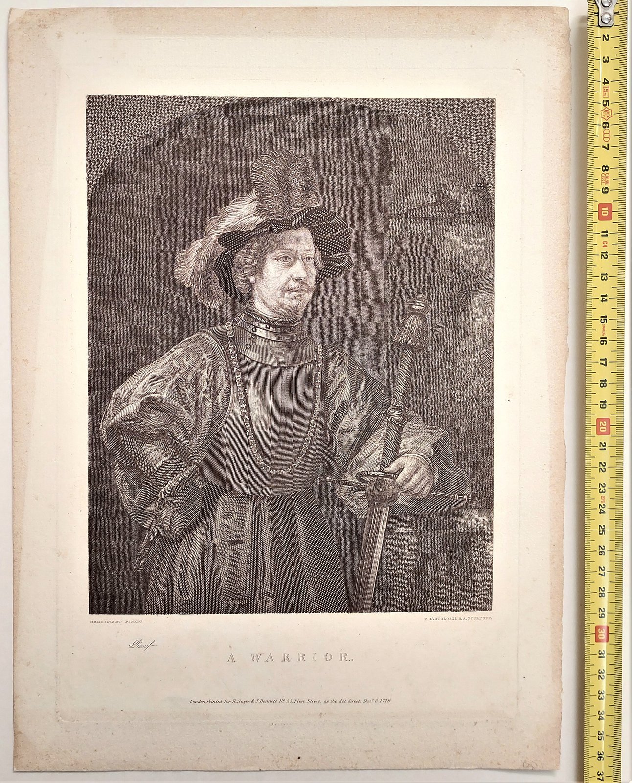 Stampa Incisione Warrior Guerriero F. Bartolozzi 1779 cm 31 x 22,5