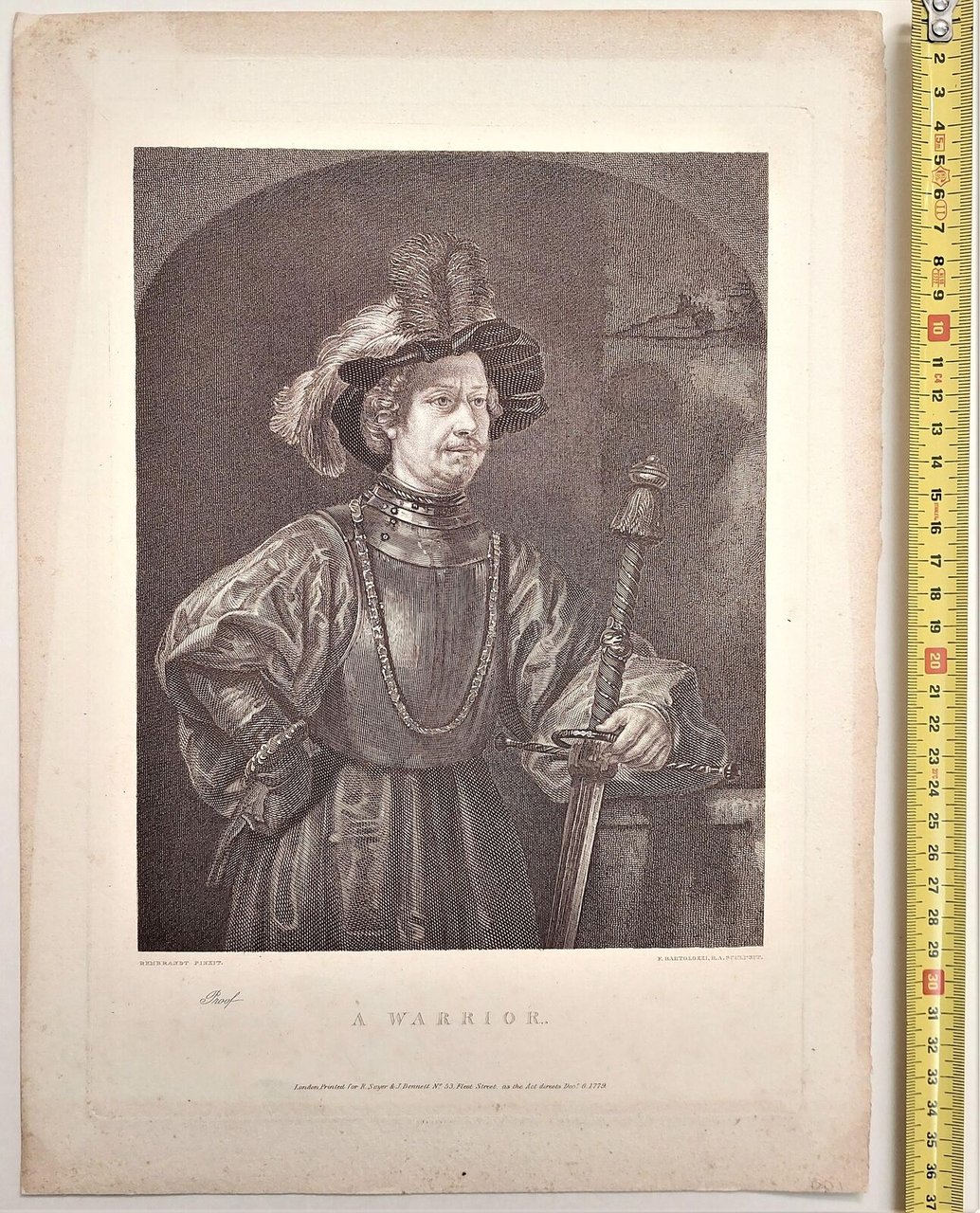 Incisione Warrior Guerriero F. Bartolozzi 1779 cm 31 x 22,5