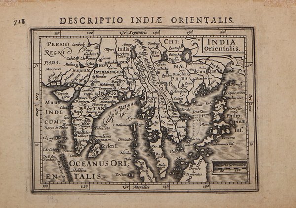 Carta geografica tratta dal ' Tabularum Geographicarum contractarum libri septem ' di Petrus Bertius, edizione latina del 1616. L'opera contiene 219 carte che illustrano questa nuova versione della geografia del Bertius, per la prima volta pubblicata nel 1612 con le carte di Barent Langenes. Le carte derivano dal grande atlante di Mercator/Hondius, delle quali molte rappresentano una semplice riduzione. "After the death of Cornelis Claesz in 1609, Jodocus Hondius II became the new publisher of the work, composed by 7 parts in 1, with engraved title-page and 220 full-page engraved maps in text. All the maps were newly engraved and slightly larger in size, because Hondius was not able to acquire the original plates. With the new plates the work was definitely improved and enjoyed a growing demand of the public, which at that time had the choice between the Atlas Minor by Mercator and Bertius' Tabularum Geographicarum. The 219 plates, with the oval world map appearing twice, were produced to illustrate a new version of the geography of Bertius, published in 1616. According to King, their correct attribution is by Hondius, after Mercator and Hondius, taken from Bertius, who was only responsible for revising his text again" [cfr. G. King, ' Miniature Antique Maps]. Incisione in rame, perfette condizioni. A superior rival to the pocket Ortelius atlas appeared about 1598, under the imprint of Barent Langenes and Cornelis Claesz. Claesz also published the Tabularum Geographicarum contractarum libri septem, edition with texy by Petrus Bertius, in 1600. After the death of Cornelis Claesz in 1609, Jodocus Hondius II became the new publisher of the work, composed by 7 parts in 1, with engraved title-page and 220 full-page engraved maps in text. All the maps were newly engraved and slightly larger in size, because Hondius was not able to acquire the original plates. With the new plates the work was definitely improved and enjoyed a growing demand of the public, which at that time had the choice between the Atlas Minor by Mercator and Bertius' Tabularum Geographicarum. The 219 plates, with the oval world map appearing twice, were produced to illustrate a new version of the geography of Bertius, published in 1616. According to King, their correct attribution is by Hondius, after Mercator and Hondius, taken from Bertius, who was only responsible for revising his text again. "After the death of Cornelis Claesz in 1609, Jodocus Hondius II became the new publisher of the work, composed by 7 parts in 1, with engraved title-page and 220 full-page engraved maps in text. All the maps were newly engraved and slightly larger in size, because Hondius was not able to acquire the original plates. With the new plates the work was definitely improved and enjoyed a growing demand of the public, which at that time had the choice between the Atlas Minor by Mercator and Bertius' Tabularum Geographicarum. The 219 plates, with the oval world map appearing twice, were produced to illustrate a new version of the geography of Bertius, published in 1616. According to King, their correct attribution is by Hondius, after Mercator and Hondius, taken from Bertius, who was only responsible for revising his text again" [cf. G. King, ' Miniature Antique Maps]. Copperplate, in very good conditions. Cfr. Koeman p. 42; King p. 96/99.