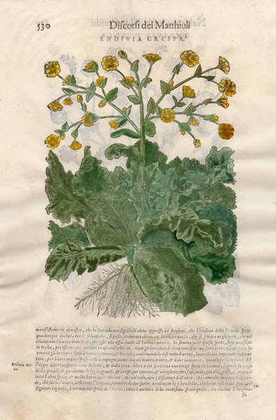 Xilografia, acquarellata, f. 20x30 cm. ca. In: MATTHIOLI, Pietro Andrea. Tavola di botanica da: "De i discorsi della Materia Medicinale" in Venetia