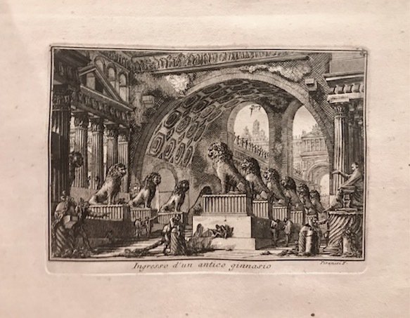 Incisione originale su rame (cm. 21,5x15,4 più ampi margini bianchi) tratta dalla rara opera ‘Opere varie di Architettura, Prospettive, Grotteschi, Antichità sul gusto degli antichi Romani.’. Magnifica prova impressa su carta vergellata. Esemplare in eccellente stato di conservazione. Focillon, n. 123; Wilton-Ely, n. 46; Ficacci, n. 403. Questa incisione, alla pari di ogni altra frutto del lavoro giovanile presente nelle ‘Opere varie’, ben evidenzia in maniera particolare le doti di inventiva e di fantasia che avrebbero caratterizzato tutta la produzione artistica di Piranesi.