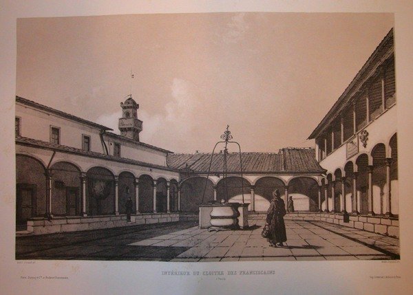 INTERIEUR DU CLOITRE DES FRANCISCAINS. Fiesole. Riproduzione tratta dall'album "La Toscane" di André Durand.