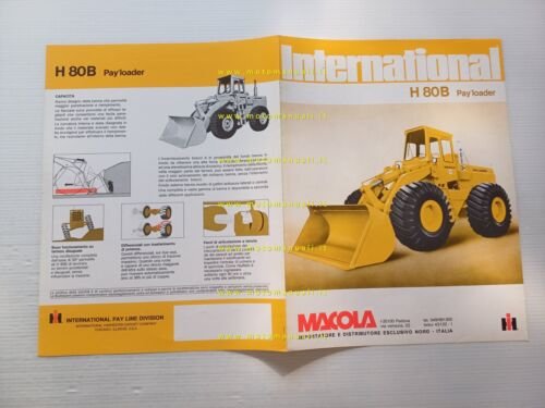 International Payloader H-80 pala caricatrice gommata anni 70 depliant originale