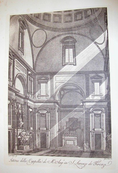 INTERNO DELLA CAPPELLA DE' DEPOSITI MEDICEI IN S.LORENZO DI FIRENZE. Riproduzione tratta da "Viaggio pittorico della Toscana" di Jacopo e Antonio Terreni.