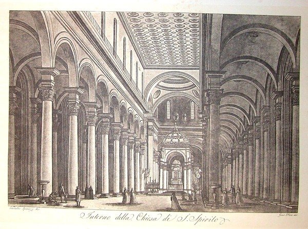 INTERNO DELLA CHIESA DI S.SPIRITO A FIRENZE. Riproduzione tratta da "Viaggio pittorico della Toscana" di Jacopo e Antonio Terreni.