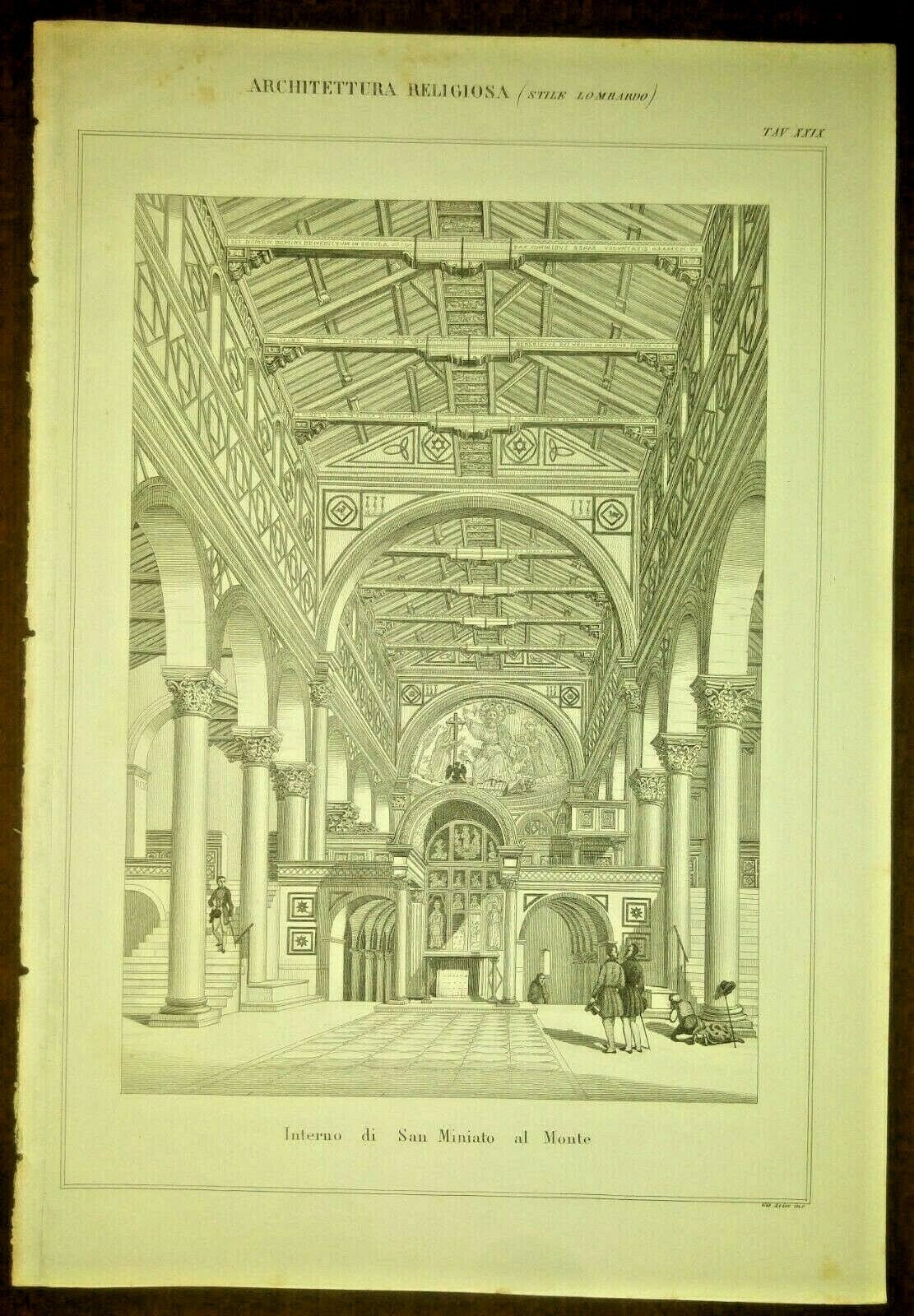 INTERNO SAN MINIATO AL MONTE ARCHITETTURA Tavola Incisione Stampa Antica 1866