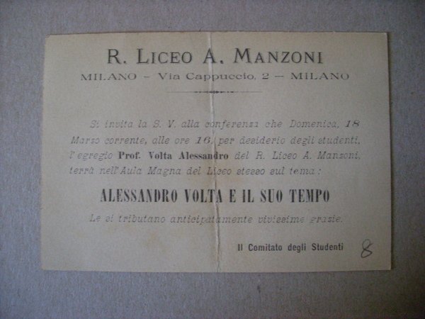 Invito alla conferenza Comitato degli Studenti "Alessandro Volta e il Suo Tempo" Liceo A.Manzoni MILANO