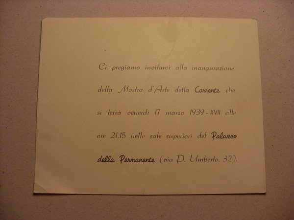 Invito alla Mostra d'Arte della Corrente - Palazzo della Permanente 1939