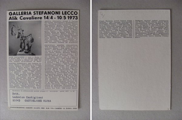 Invito Galleria Stefanoni Lecco. ALIK CAVALIERE 1973