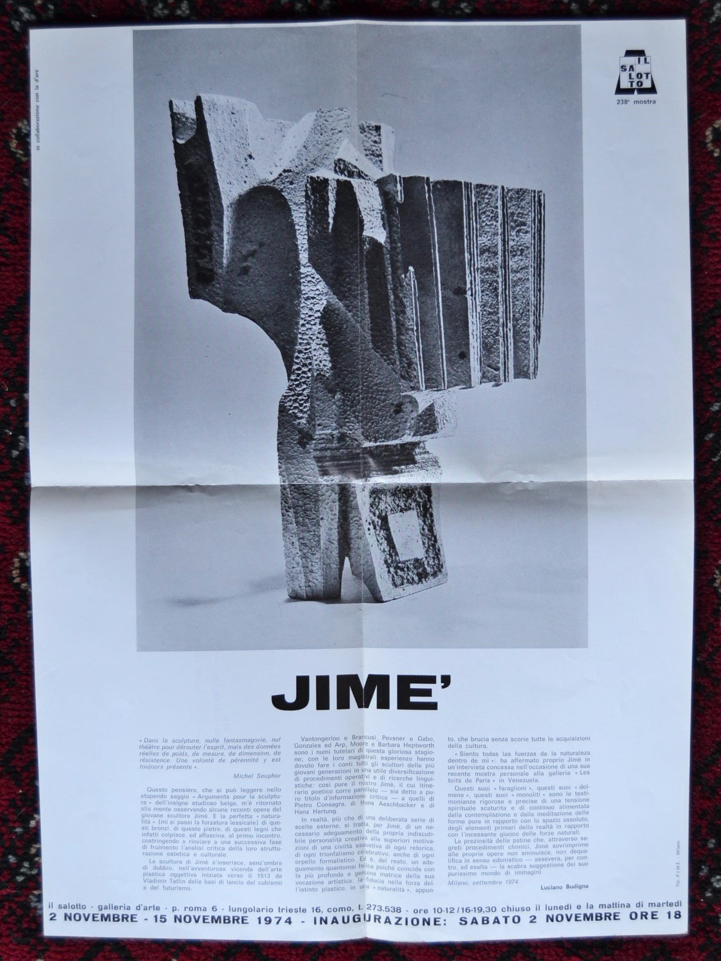*Invito/manifesto 238° mostra La Galleria il Salotto COMO. Jimè. 2 Novembre 1974