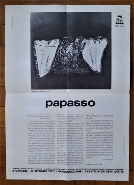 *Invito/manifesto 267° mostra ANTONIO PAPASSO. Galleria d'Arte Il Salotto - Como. 4 ottobre 1975
