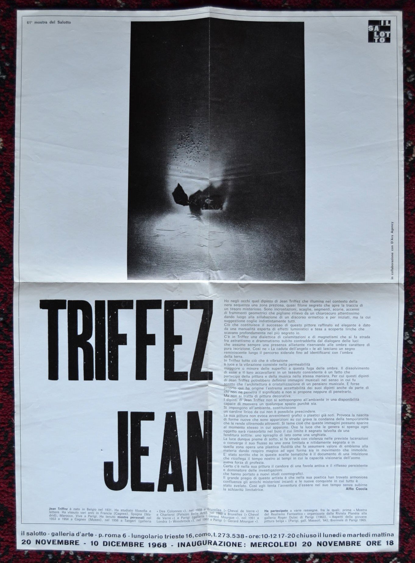 *Invito/manifesto 61° mostra La Galleria il Salotto COMO. JEAN TRIFFEZ. 20 Novembre 1968