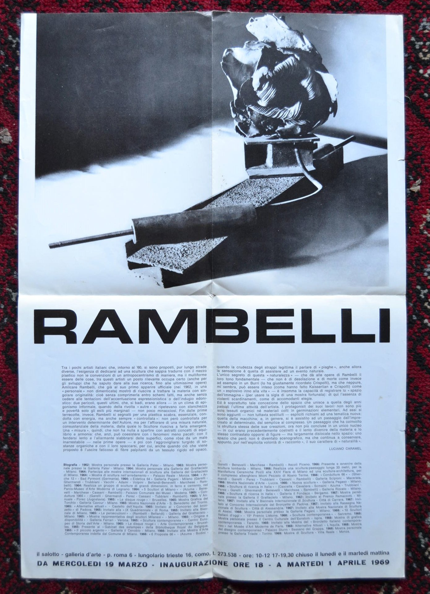 *Invito/manifesto 68° mostra La Galleria il Salotto COMO. AMILCARE RAMBELLI. 19 Marzo 1969