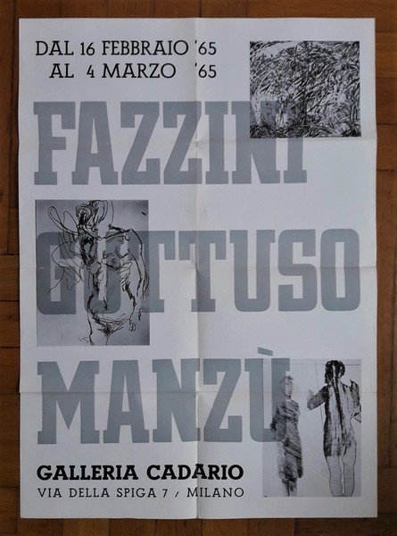 *Invito/manifesto mostra Fazzini - Guttuso - Manzù. Galleria Cadario - Milano. 16 febbraio 1965