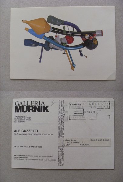Invito mostra ALE GUZZETTI "Falò a 4 - 5 voci ed altre cose polifoniche" - Galleria Murnik 1989
