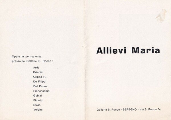 Invito mostra Allievi Maria 1965. Galleria S. Rocco - Seregno