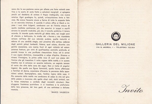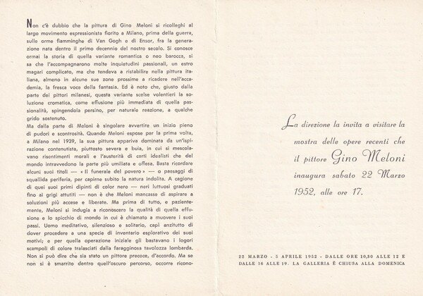 Invito mostra GINO MELONI 1952 - Galleria del Milione - Milano