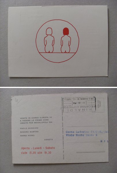 Invito mostra Megalopoli: Paolo Buggiani / Sandro Martini / Mario Nigro 1979