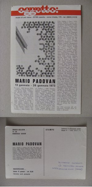 *Invito mostra Oggetto: MARIO PADOVAN 1973. Studio di arti visive CASERTA