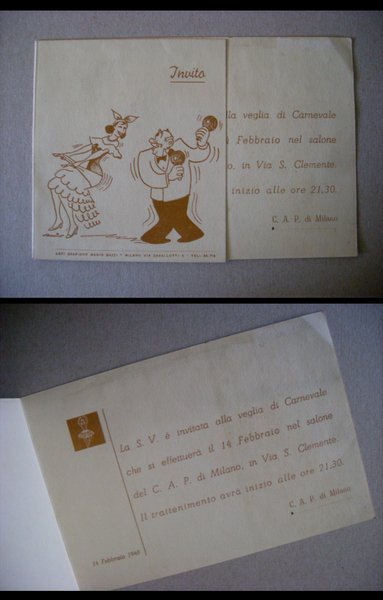 Invito veglia di Carnevale nel salone del C.A.P. di Milano in Via S.Clemente 1948