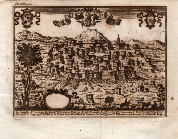 Incisione all’acquaforte, f. 14×18,5 cm. ca. In: PACICHELLI, Giovanni Battista – Il Regno di Napoli in prospettiva… Napoli, Stamperia Luigi Mutio