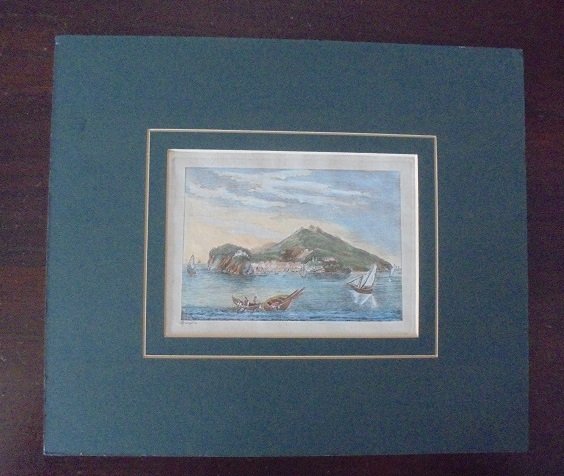 Incisione di mm. 110 x 70 (=lxh) più margini. Firmata in basso a sinistra Brienza. Colorata a mano di recente. Non abbiamo elementi per identificare la stampa.