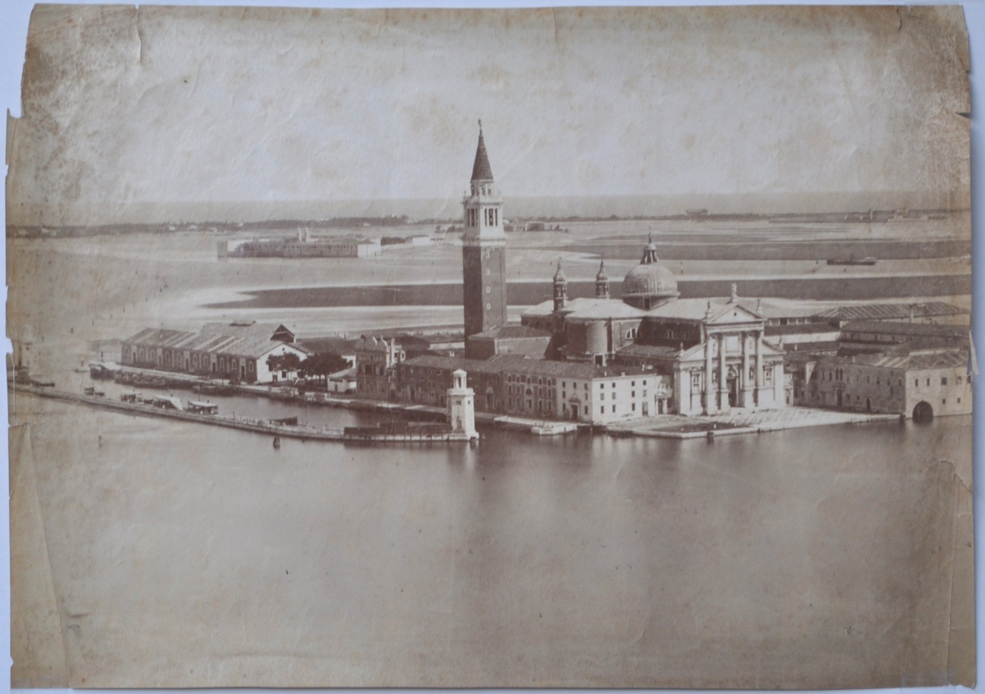 Fotografia originale all'albumina di mm 310 x 230 mm. Stato di conservazione discreto. Paolo Salviati (1818-1894) fu tra i più attivi fotografi della fine dell'ottocento. Purtroppo sono poche le notizie biografiche: veneziano di nascita, contemporaneo di Carlo Naya, possedeva almeno due botteghe in Piazza San Marco. Fu reso celebre, oltre che per le immagini panoramiche, per i ritratti fotografici, a quel tempo in gran voga.