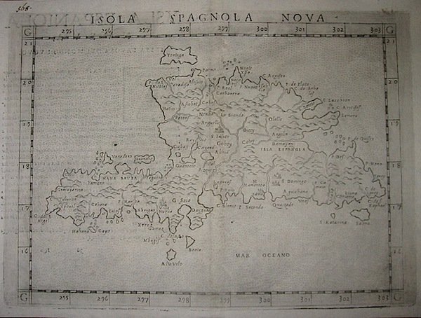 Incisione originale su rame (cm. 26,5x19,5 più margini bianchi) tratta da ‘La Geografia di Claudio Tolomeo’. Ottimo esemplare.