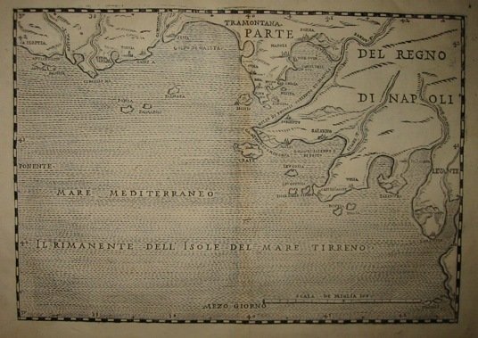 Xilografia originale (cm. 24x17 più margini) tratta da ‘Descrittione di tutta l’Italia’. Ottimo esemplare.