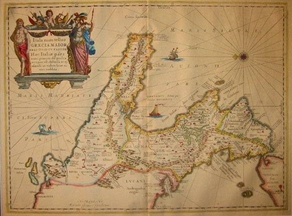 Carta geografica originale (cm. 50x37 più ampi margini) pubblicata da Janssonius. Bella coloritura antica all’acquarello. Ottimo esemplare.
