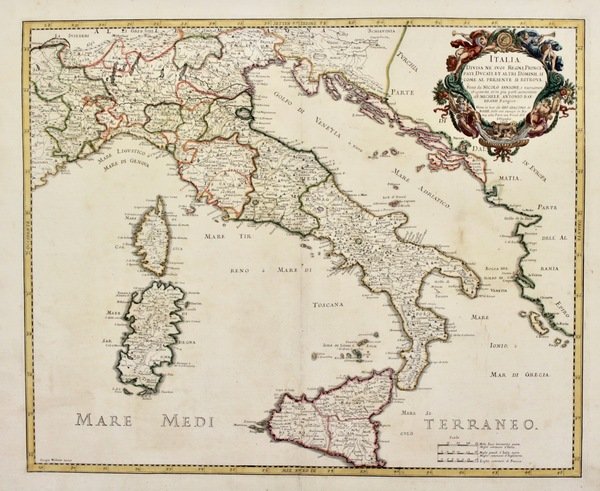 Italia divisa ne' suoi Regni, Principati, Ducati, et atri Dominii, si come al presente si ritrova. Fatta da Nicolò Sansone e…aumentata da Michele Antonio Baudrand.