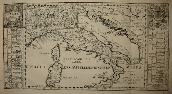 Carta geografica originale (cm. 30,5x16 più ampi margini bianchi) tratta da ‘Curioses Staats und Kriegs Theatrum.’. Esemplare in perfetto stato di conservazione.