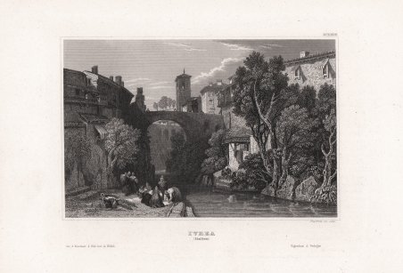 Veduta tratta dal celebre ' Meyer's Universum, ' raccolta di tavole raffiguranti città e luoghi di tutto il mondo pubblicata in fascicoli a Hildburgshausen, dal Bibliographisches Institut. Quest'opera seriale molto popolare, lanciata nel 1833 da Carl Joseph Meyer, presentava incisioni di paesaggi, vedute e monumenti architettonici di tutto il mondo. La presentazione di queste immagini evocava un senso di accesso non mediato allo spettacolo visivo, ma si basava su un paradosso. Nei suoi testi Meyer aspirava a offrire ai lettori una visione inedita e di prima mano del mondo conosciuto. Allo stesso tempo, però, la sua strategia editoriale si basava su un sistema di riciclaggio transnazionale e di prestito non riconosciuto di illustrazioni da altre fonti. Lo studio Meyer ripubblicava spesso le immagini in nuove configurazioni in diverse serie, anche in versioni tradotte all'estero. Il risultato privilegiava una presentazione visiva del mondo arbitraria e decontestualizzata, nell'interesse della convenienza editoriale e dell'economicità. Carl Joseph Meyer nacque a Gotha, in Germania, e si formò come mercante a Francoforte sul Meno. Meyer operò con grande successo come editore, utilizzando un sistema di abbonamento seriale alle pubblicazioni, nuovo per l'epoca. A questo scopo fondò una società, il ' Bibliographisches Institut, a Gotha nel 1826. Pubblicò diverse edizioni della Bibbia, opere di letteratura classica, il mondo in immagini su incisioni in acciaio ("Meyers Universum", 1833-61, 17 volumi in 12 lingue con 80.000 abbonati in tutta Europa) e un'enciclopedia ("Das Grosse Conversations-Lexikon für die gebildeten Stände"; cfr. Meyers Konversations-Lexikon, 1839-55, 52 volumi). La sua azienda crebbe notevolmente e nel 1828 la trasferì da Gotha a Hildburghausen. Si dedicò alla cartografia, producendo molti atlanti con mappe incise su lastre d'acciaio, tra cui il Meyer ' Gro?er Hand-Atlas ' (1843-1860). Dopo la morte di Meyer nel 1856, il figlio Herrmann Julius Meyer rilevò ' il Bibliographisches Institut, che all'epoca era in difficoltà ' finanziarie. Incisione in rame, in buono stato di conservazione. View taken from ' Meyer's Universum, ' published by the Bibliographisches Institut, in Hildburgshausen. This highly popular serial work, launched in 1833 by Carl Joseph Meyer, featured engravings of notable landscapes, vedute, and architectural monuments from around the world. The work's presentation of these images evoked a sense of unmediated access to visual spectacle but was predicated on a paradox. In his texts Meyer aspired to offer readers unprecedented and first-hand views of the known world. At the same time, however, his publishing strategy was predicated on a system of transnational recycling and unacknowledged borrowing of illustrations from other sources. Meyer's firm frequently republished the images in new configurations in different series, including in translated versions abroad. The result privileged an arbitrary and decontextualized visual presentation of the world in the interest of publishing expedience and cost-effectiveness. Carl Joseph Meyer Meyer was born at Gotha, Germany, and was educated as a merchant in Frankfurt am Main. Meyer operated very successfully as a publisher, employing a system of serial subscription to publications, which was new at that time. To this end he founded a company, ' Bibliographisches Institut, in Gotha in 1826. It published several editions of the Bible, works of classical literature, the world in pictures on steel engravings ("Meyers Universum", 1833–61, 17 volumes in 12 languages with 80,000 subscribers all over Europe), and an encyclopaedia, ("Das Grosse Conversations-Lexikon für die gebildeten Stände" 1839–55, 52 volumes). His company grew substantially, and in 1828 he moved it from Gotha to Hildburghausen. He became involved in cartography, producing many atlases with steel-engraved maps printed from steel plates, including Meyer's ' Gro?er Hand-Atlas ' (1843-1860). After Meyer's death in 1856, his son Herrmann Julius Meyer took over the Bibliographisches Institut, which was at that time struggling financially. Copperplate, in good condition. Cfr.