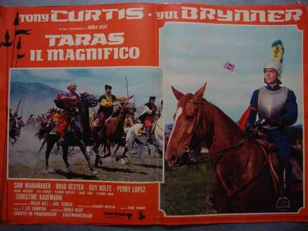 J. Lee Thompson (regista) Tony Curtis -Yul Brynner in "Taras il Magnifico" Fotobusta cinematografica. Con Sam Wanamaker, Brad Dexter, Guy Rolfe, Perry Lopez e Christine Kaufmann (49b/56b).